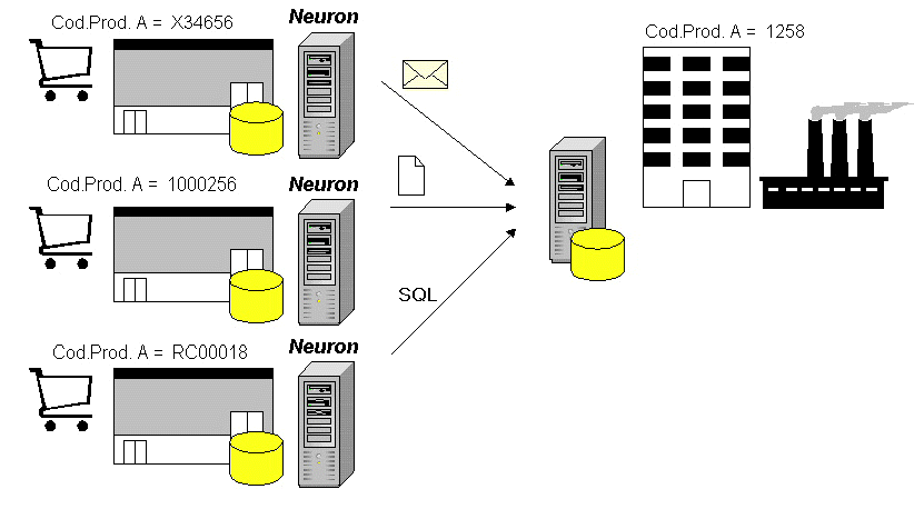 It is very common that each company manages his own products codes , different to those of the supplying companies ,so it is necessary always a translation of those to carry out orders or any other administration type. With Neuron it is possible to automate this task of translation with the additional advantage of managing different sources and formats and to establish conditions for the interconnection..