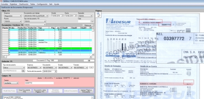 Los documentos pueden ser clasificados en forma manual con valores preestablecidos o en forma automática en el servidor mediante identificación de zonas definidas. |