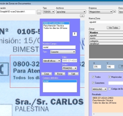 Además de la lectura por OCR se pueden extraer valores de códigos de barras lineales y 2D, y en ambos casos se pueden tomar parciales del renglón o del código. |