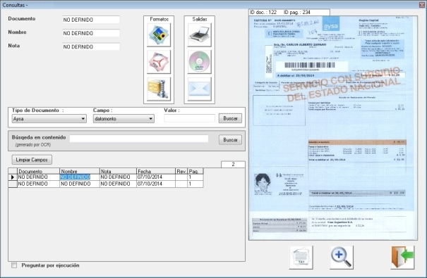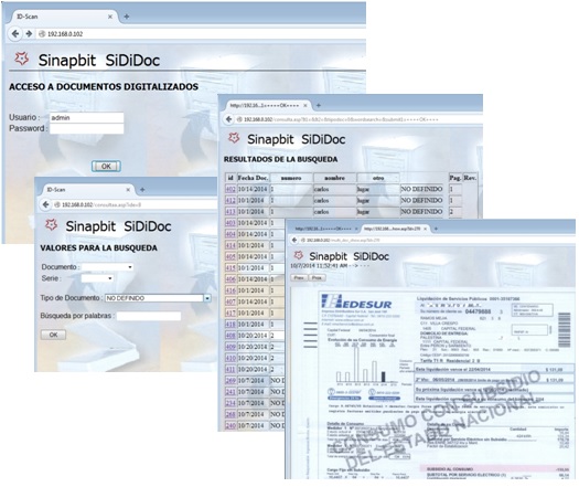 Los documentos pueden ser buscados de distintas formas, tipo de documento, clasificadores, palabras, y los mismos pueden ser convertidos a PDF, compactados y ser enviados por correo o exportar a CD o carpeta. |